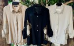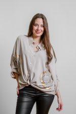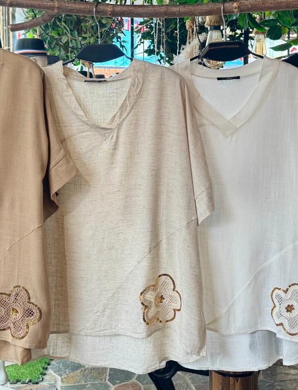 Blusa lino 2 flores dorada 21535