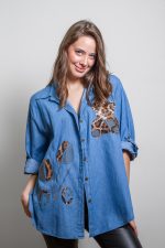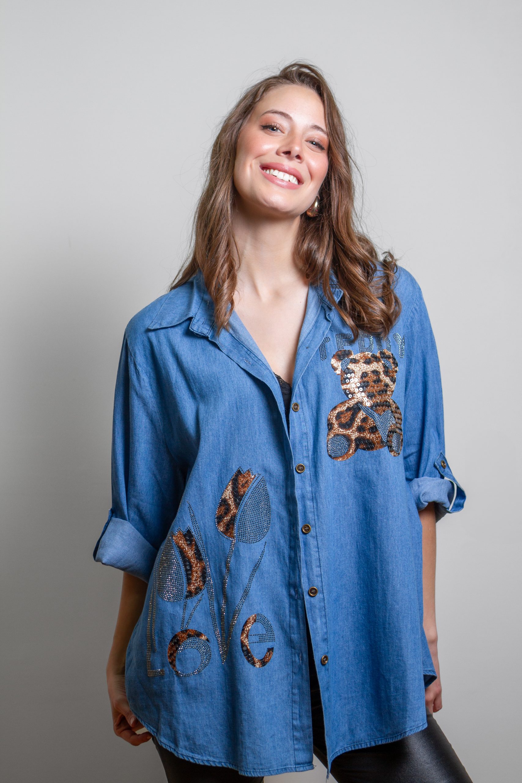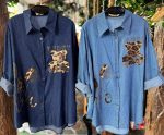 Bluson mezclilla con mostacilla flor y oso