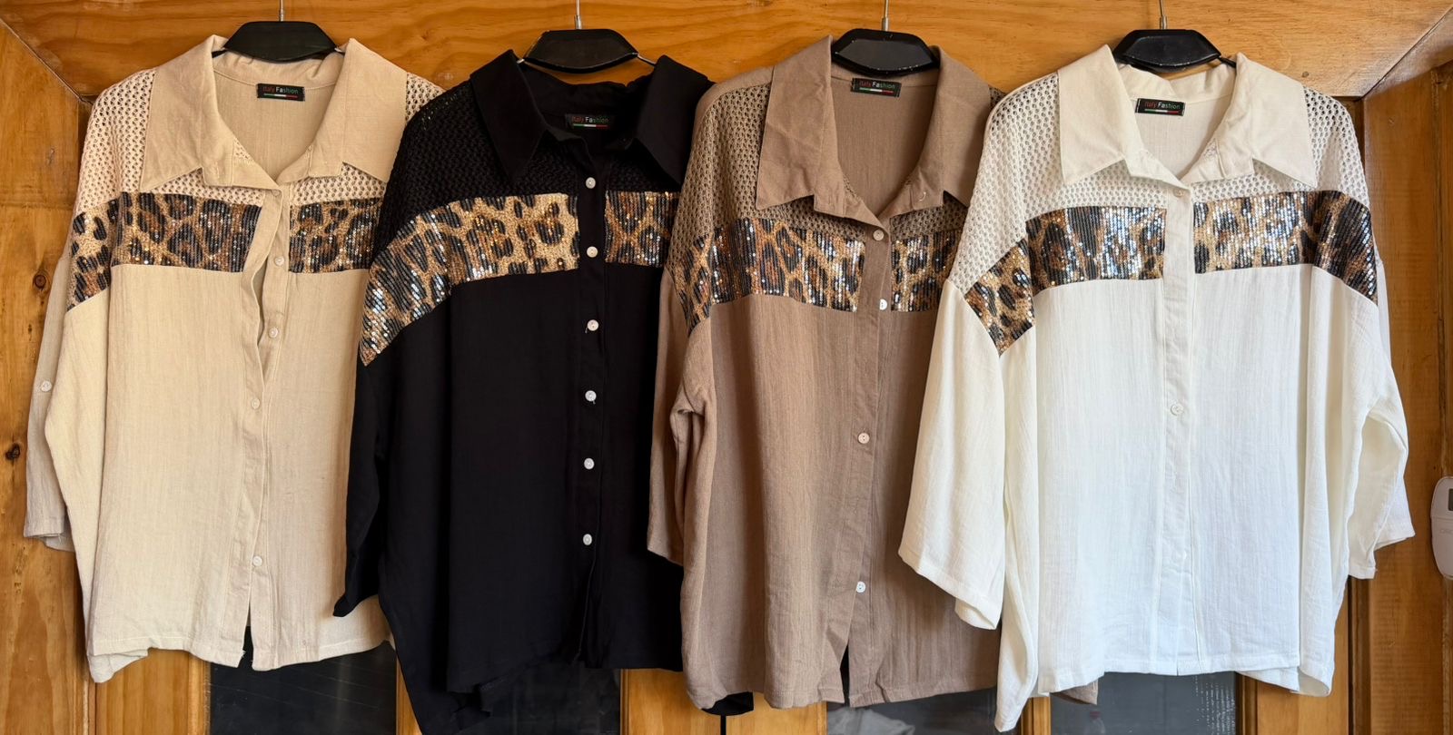camisa con franja mostacilla print leopardo
