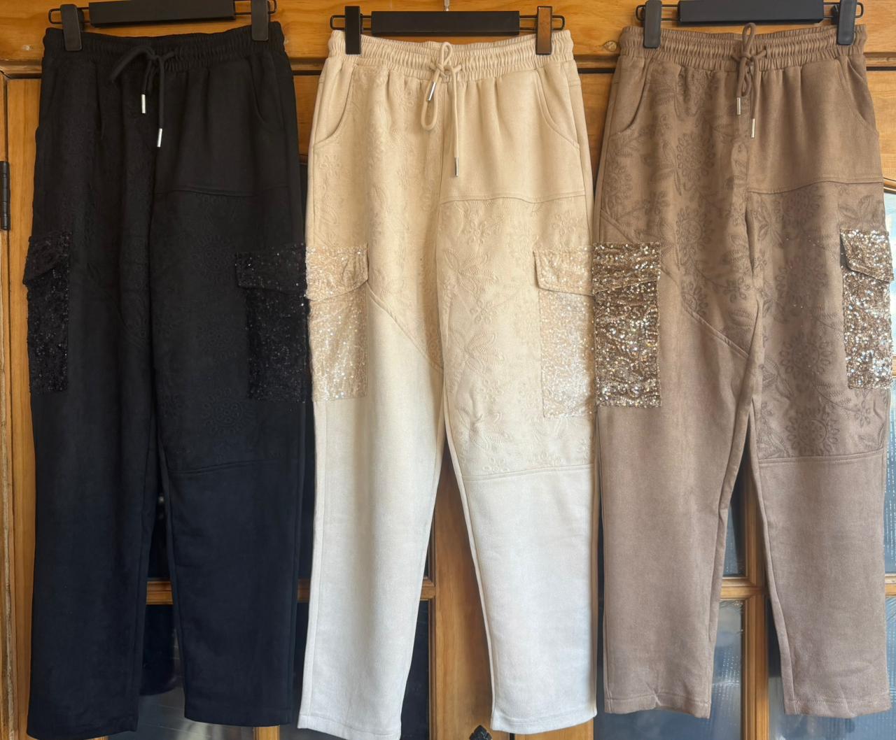 Jogger gamuza estilo cargo con broderie