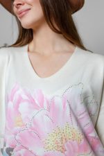 Chaleco spandex con flor estampado flor de loto con leopardo. Tiene detalle de mostacillas brillante