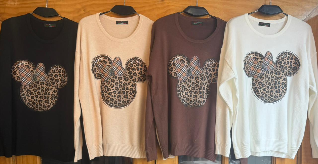 Chaleco spandex elasticado con minnie leopardo